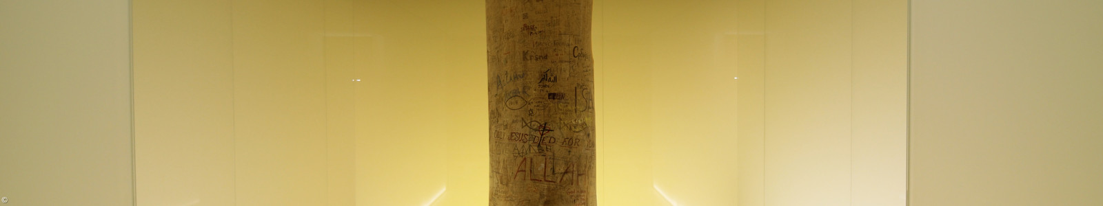 In Terminal 2 on level 05, in the non-Schengen area, there is room 2194. In 2005, it was designed by the artist E.Lin (Erwin Wiegerling) and opened as a space for prayer and silence. In the middle of the highly technical and busy environment of the airport, an oasis of peace opens up, which is open to people of all religions or even without religion. At the center is a cube of glass illuminated with warm light, built into a dark shell of space. It protects a 140-year-old, mighty tree trunk fixed in textured sand that extends from the floor to the ceiling. Natural materials - symbols of creation that people of all religions can understand and about which they can recollect their roots and origins, about which they can ground themselves.